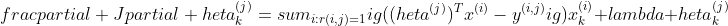 }}=\sum_{i:r(i,j)=1}{\big((\theta^{(j)})^Tx^{(i)}-y^{(i,j)}\big)x_k^{(i)}}+\lambda \xtheta_k^{(j)})
