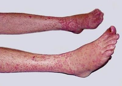 那過敏性紫癜真的是過敏么?不是!不是!不是!重要的事情說三遍!那是怎麼引起的呢?過敏性紫癜本質上是皮膚小血管炎的一種,它一般發生在上呼吸道感染後的1-2個星期。發病機制主要是細菌或者病毒感染誘發了機體異常免疫複合物的合成增多,如IgA、C3等形成異常的免疫複合物,沉積在血管壁,攻擊和損傷了皮下的小血管,造成血細胞的外滲,形成紫癜。這是一個經典的III型變態反應的過程,而常說的過敏是I型變態反應或IV型變態反應。簡單的講,過敏性紫癜的發病機制跟真正過敏的機制中間相差了十萬八千里,過敏性紫癜其實跟過敏屁關係沒有(好繞口555~)。這也就是為什麼國際上沒有過敏性紫癜的叫法,人家要麼用對這個病的認識有重大貢獻的Sch?nlein和Henoch師徒兩的名字命名亨-舍紫癜,或者直接按真正的發病機製取名IgA免疫複合物紫癜,亦或者淺顯易懂叫風濕性紫癜,因為很多其他風濕性疾病的發病機制也與此多少類似,如紅斑狼瘡、類風濕性關節炎及其他風濕性血管炎等病。
