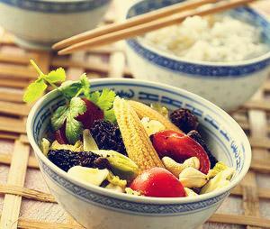 中餐的輕食其實與素食類似,但是摒棄掉重油重味的素菜葷做的方式。以簡單的蒸煮炒烤烹飪,注重少鹽少油,主食也是糙米、蕎麥等為主。