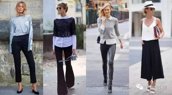 上面講解了各種常見款式的褲子分類,七七也簡單挑選了各類小黑褲的幾款穿搭示範。