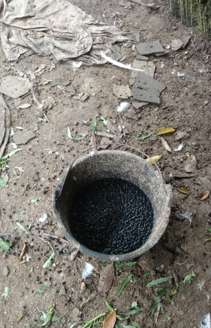 高度腐敗的魚腸子,很明顯裡面有幾位為了吃連命都不要的。介於這玩意太臭了,趕緊拍張照然後丟到事先挖好的坑裡埋了。