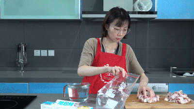 原本C探員的設想和理解是這樣的:經過一晚的腌制,第二天起來只需要把那袋雞肉扔進水浴鍋里,然後就可以該幹嘛幹嘛去。時間一到,就可以招呼大伙兒開飯了。