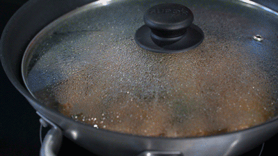加入九層塔以後,蓋上鍋蓋熄火,悶3分鐘,DONE。