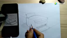 再根據透視原理將剩下的邊補齊。此時我們就成功地將這個印表機歸納成為了一個方體,而且是一個透視、比例都比較準確的方體,接下來就可以逐步進行細化。