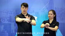 簡單拉伸動作做得過程中,一定要注意身體要放鬆,除手臂和手腕動作外,身體其他部位保持不動,比如肩膀不要聳起來。那第三個動作,也很簡單,右手手臂與地面水平,五指捏在一起,指尖與手臂垂直向外,左手拉住右手手指,維持五秒,每隻手須重複做3至4組。