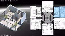 日行跡塔根據不同的用途分成不同的區域,最下層是購物中心、娛樂場所和餐廳,往上則是商業辦公區。住宅和花園佔據塔上2/3的區域,連喪葬場地都考慮進去了,這是一上去就不打算下來的準備呀...