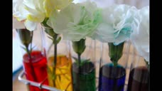 把枝幹劈開,插入不同顏色的水中,看看小花兒會不會有兩種顏色?