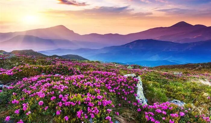 無數鮮花佔領了平原又爬上山崗