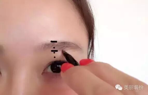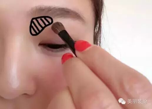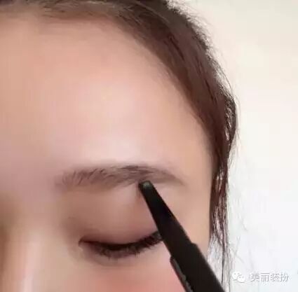從黑眼珠上方開始,往眉梢方向塗眉粉。然後再把眉粉塗滿整個眉毛。從黑眼珠上方開始畫的好處是可以很好地畫出平行的眉毛,而且左右對稱。