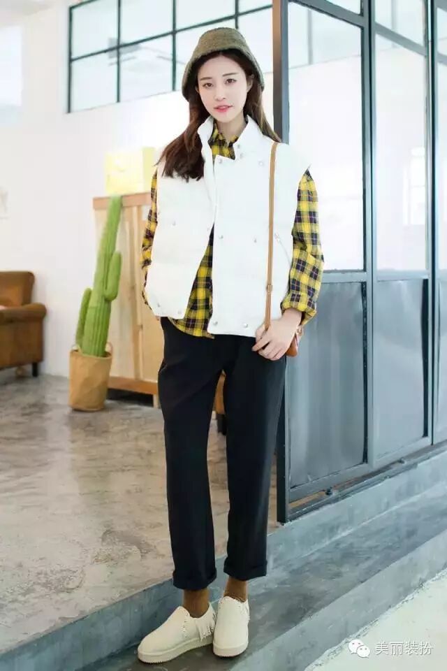 今年超級流行的麵包型馬甲,內搭襯衫就不會顯得太臃腫,同時兼具時尚度和保暖性,下身搭配小黑褲或者牛仔褲,都會很時尚哦!