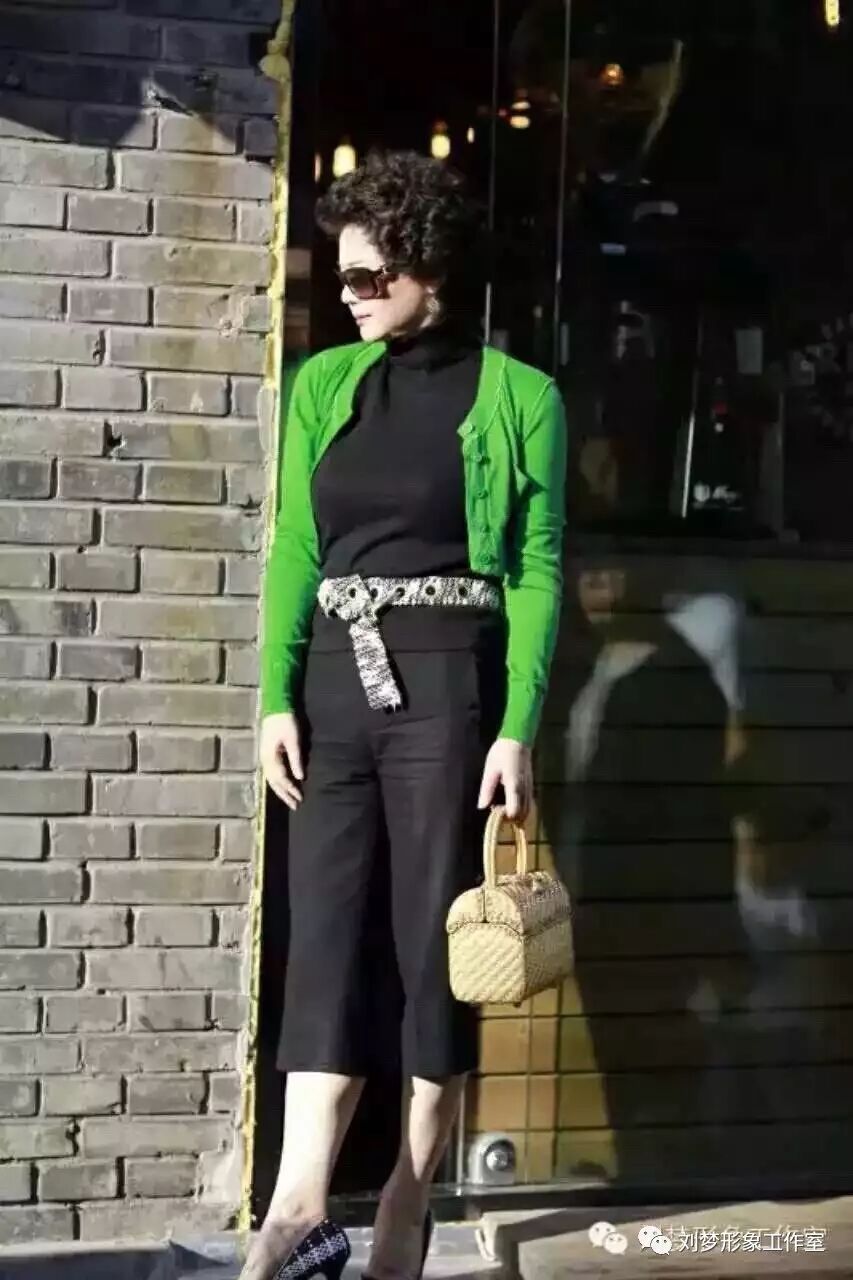 與服裝不同色或淺色的腰帶,會將軀體截成兩半,所以個子矮的人,不要使用與服裝不同色或淺色的腰帶,以免軀體在視覺上造成分割而變矮了。