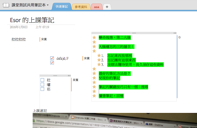 5. 共寫筆記本:多人即時同步合作筆記但是 OneNote 可以自由排版筆記的特性,也就是他是以一個一個圖文區塊來解析內容的技術,帶來了一個我必須大力稱道的優點,那就是:
