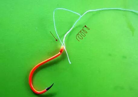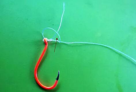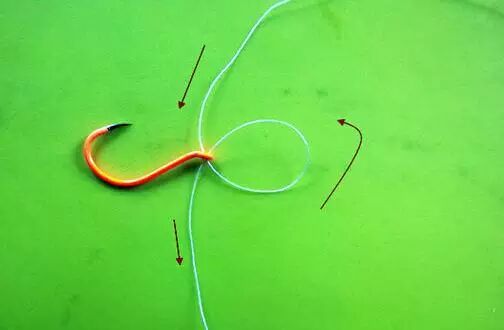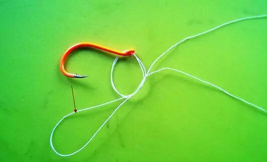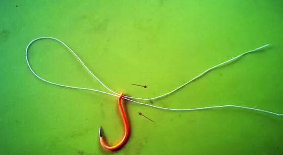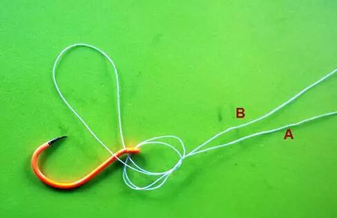 魚鉤穿過線的圈圈,並拉緊AB兩側