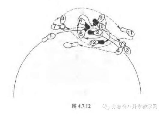 (2)右手隨左臂旋於左肩前。掌心向上(圖4.7.10).