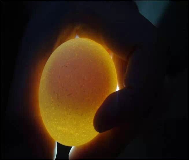 在太陽光下或在燈光下,把蛋對著光線看,如果蛋的透光度很好,在燈光下顏色呈透亮就是好蛋。也可以在購買時用探照燈照雞蛋鑒定。