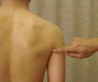 取穴:在肩胛骨的中心點處。肩胛骨是個三角形,一般我們能自己摸到,如果摸不到這個穴位的話,那說明你的肩關節活動不利。