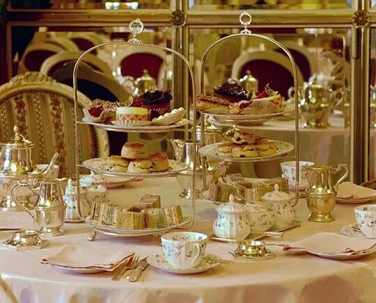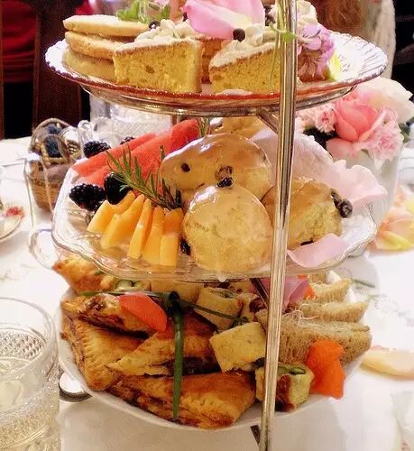 從中飯到晚餐,空肚子七八個小時,是個人都要餓死了。於是有個叫Anna的公爵夫人想出了一個辦法,到了下午四點左右,她就叫廚房為她做一些小點心,像三明治、司康和蛋糕、果醬和奶油之類的來填填肚子。一個人吃獨食當然寂寞啦,於是公爵夫人就開始邀請自己的閨蜜來一起品茶吃點心。