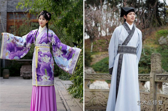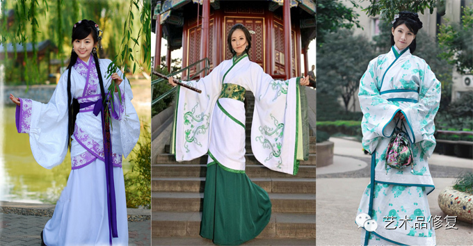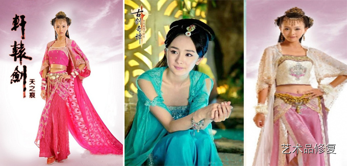 古裝中經常與漢服弄混,形成自己的「cosplay」無厘頭風格。 像這三種衣服就看不出漢服形制,胳膊裸露甚至透視裝,簡直……漢服最露的只有唐朝的袒領襦裙,還只能看見胸口一小片。所以這些只能稱作古裝。男裝古裝也隨便拿幾個例子: