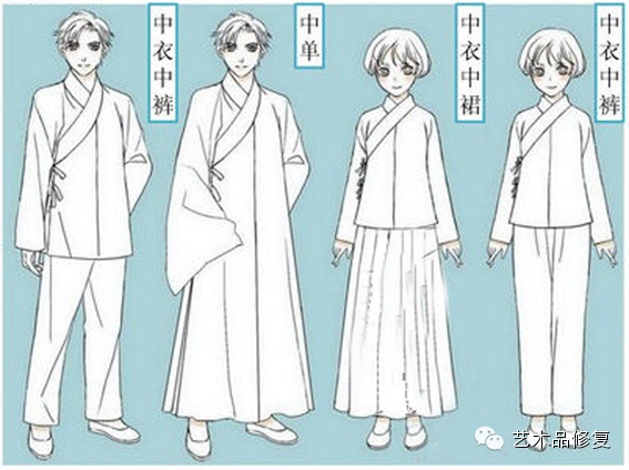 上衣下裳式其中男子的服飾就沒有女式花樣繁多、色彩絢麗,且大多只有貴族男子,甚至只有皇帝一個才能穿著,比如玄端(周至漢)或袞服(周至明)。因此對於日常生活沒有太多參考作用。