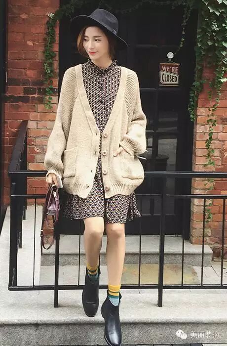 木耳邊領小碎花百褶連衣裙+ V領單排扣口袋針織開衫,喜歡這種簡約款的YY ,慵懶隨性的feel,清新可愛。