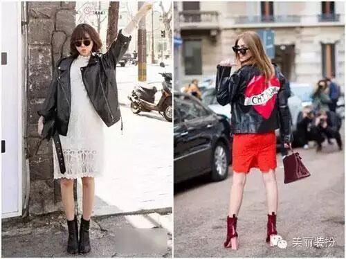 這種搭配是大長腿的菜,如果是黑色夾克,裙子隨便穿。如果是其他顏色的外套,就直接穿黑色長裙。