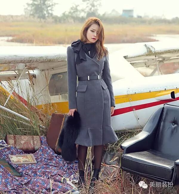 灰色系的中長款呢子外套+黑色的氣質短靴,簡潔大氣的V領,百搭的灰色系,腰間搭配上腰帶秀出腰身,荷葉邊點綴的裙擺增加靈動感。