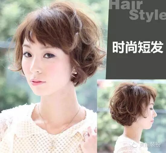 這款短捲髮比較有成熟的女人味,斜劉海撥向一側微微露出額頭,後腦勺的頭髮全部燙曲卷,後腦勺頭髮蓬起,不遮住脖子,既有特色又成熟。