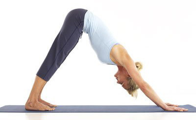 2. 下犬式功效:放鬆身體,恢復體力,緩解肩胛部僵硬感,伸展肩部、腳部筋骨,活動小腿和雙手,強化雙臂和雙腿;緩解失眠、減輕壓力。加薇信:kpp6655 教你一天瘦一斤動作要領:從跪立開始,手心朝下置於地面,雙手與肩同寬,雙膝與臀部同寬。雙腳雙手緊貼地面,抬高臀部,使身體與地面形成一個三角形,以臀部為頂。如果腿部感覺僵硬,可以適當踮起腳或者彎曲雙腿。呼氣時肩膀下壓,讓肩膀和耳朵分開。盡量張開手指和腳趾,分散受力點,從而保證身體重量平穩。為分散雙臂的承受力,使該動作達到最佳的放鬆效果,你可以(抬高膝蓋骨)讓股四頭肌配合雙臂受力。小貼士:如果在這一式中手臂需要輔助,可以倚牆放一把椅子,手置於座椅上。