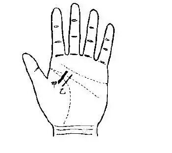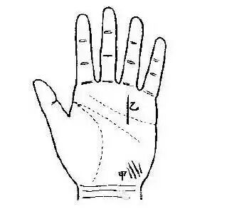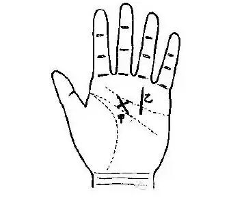 與自殺紋不同,不測紋(甲)表明的是客觀環境對身體造成的傷害。從中指指下開始,斜穿過生命線(必須穿過),則容易遭受意外身體傷害,一定要謹慎。