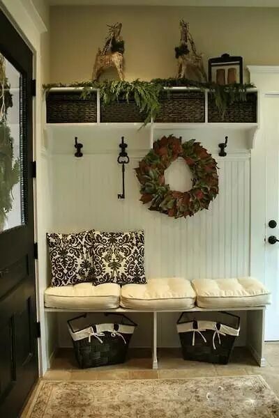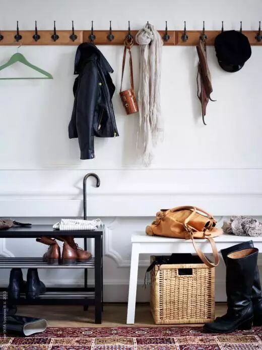 如果家裡裝飾很樸實,那麼玄關也不宜做得太花哨,穩重帶木紋的掛鉤,一隻可愛的收納箱,一塊色彩簡單的小地毯,都是不錯的選擇。