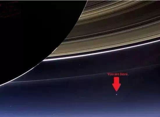 19.仰望天空,我們都覺得其他的星星很小,但若從土星的環後方來看的話,地球也相當渺小。