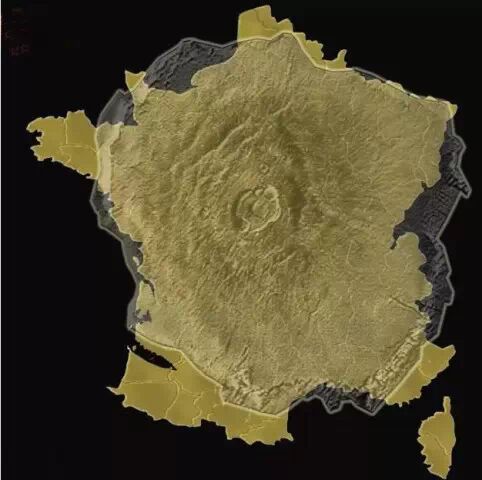 13.而這座巨型火山,大概也跟一個法國差不多大。