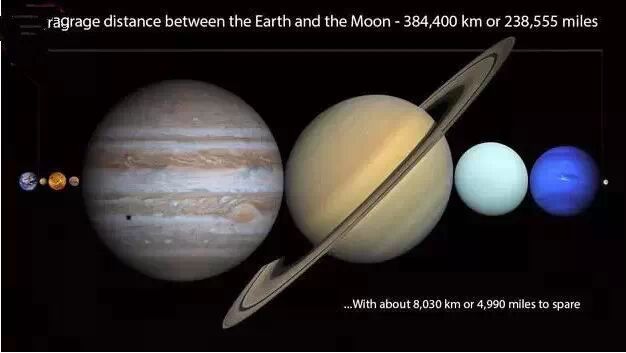 11.地球到月球的距離貌似很短,但是已經可以塞下太陽系的所有星球了。