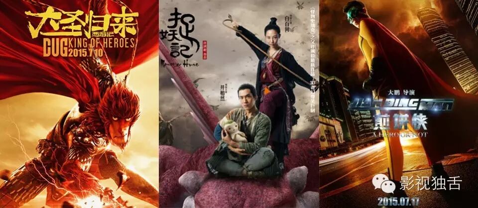 七月初首先吹響暑期檔集結號的是陳凱歌的《道士下山》,它在眾聲喧嘩中熱鬧了一周,旋即遭遇《小時代4》和《梔子花開》的阻擊,兩部片子都以將近一億的首日票房橫刀立馬,但好景不長,作為市場中的產品,二者的生命期都僅為一周。橫空出世的《大聖歸來》、《捉妖記》、《煎餅俠》策馬揚鞭,生生將兩部次品擠出市場。《道士下山》里講,「不擇手段是豪傑,不改初心是英雄」,「豪傑」退場,「英雄」競帆,這才有點世界第二大電影市場該有的氣象。