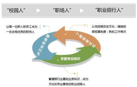 在英語中,新員工培訓是「New Employee Orientation」而非直譯的「New Employee Training」,其中的「Orientation」又有導向、方向的意思。可見,新員工培訓會在一定程度上影響新成員的發展方向,其意義至關重要。畠山芳雄曾經提出:「培養新員工,有兩點很關鍵。一是要教給新員工做事的方法,讓新員工享受工作的樂趣;二是要新員工具備公司員工應有的素質,直到形成潛意識的條件反射。」招銀大學期望能與新員工培養者一起,以「培訓」幫助新員工勝任崗位技能,用「培養」持續打造新員工職業素養,共同幫助新員工完成從校園人到職場人,再到職業招行人的轉變。