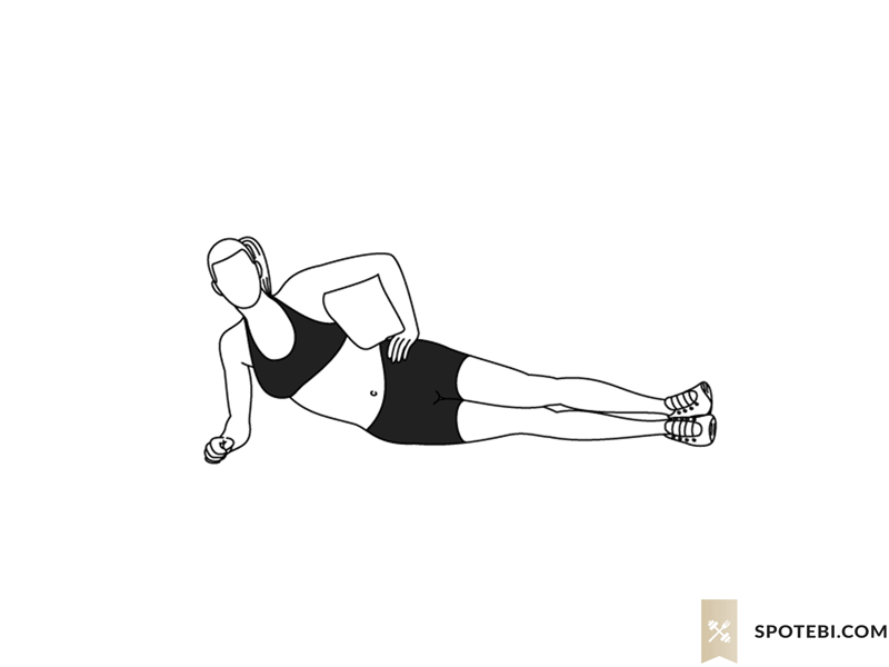 首先側躺在墊子上,右手臂撐起身體,肩膀、臀部、腳尖呈一直線,肚子收緊,腰部下沉,保持呼吸再往上,感覺到側腹肌收縮用力,下沉抬起連續動作算1下。