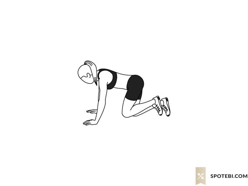 跪姿卧於墊子上,上半身用雙臂支撐,手肘部位微微彎曲;下肢部分屈膝用雙膝著地支撐身體,收緊腹部及下腰部並保持身體核心部位穩定不晃動,肩膀與髖骨成一直線。接著,將其中一條腿往上抬,膝蓋維持彎曲,到頂端後停留約兩秒,再慢慢下降。下降到腳大拇指或膝蓋微微碰到地面時,就不要再往下,請立刻再次上抬。